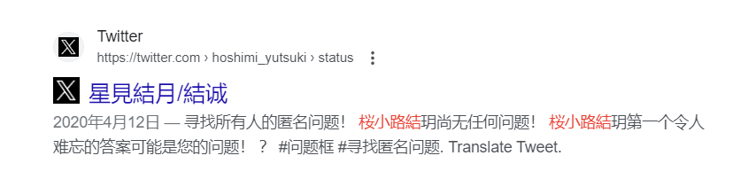 谷歌(Google.com)查询到2020年4月12日推特ID为桜小路結玥(@Hoshimi_Yutsuki)