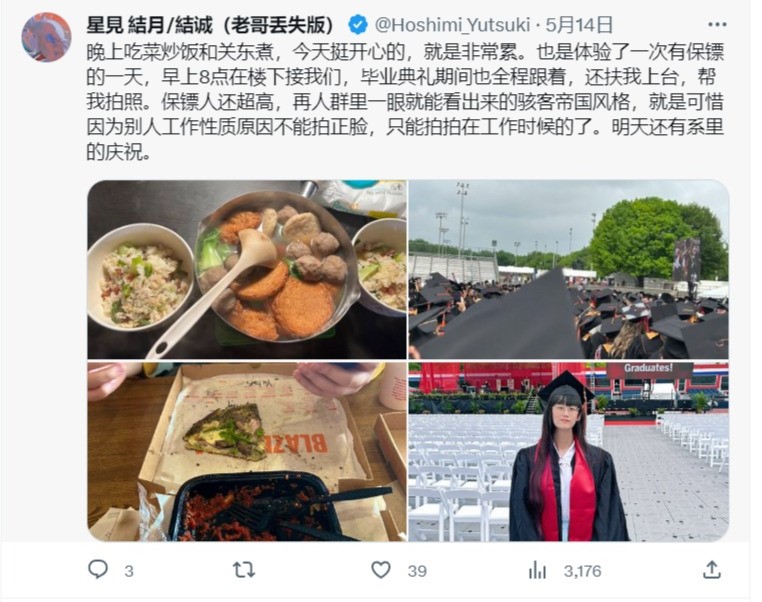 • IUPUI(印第安纳大学与普渡大学印第安纳波利斯联合校区)毕业(推特2023年5月14日毕业照)