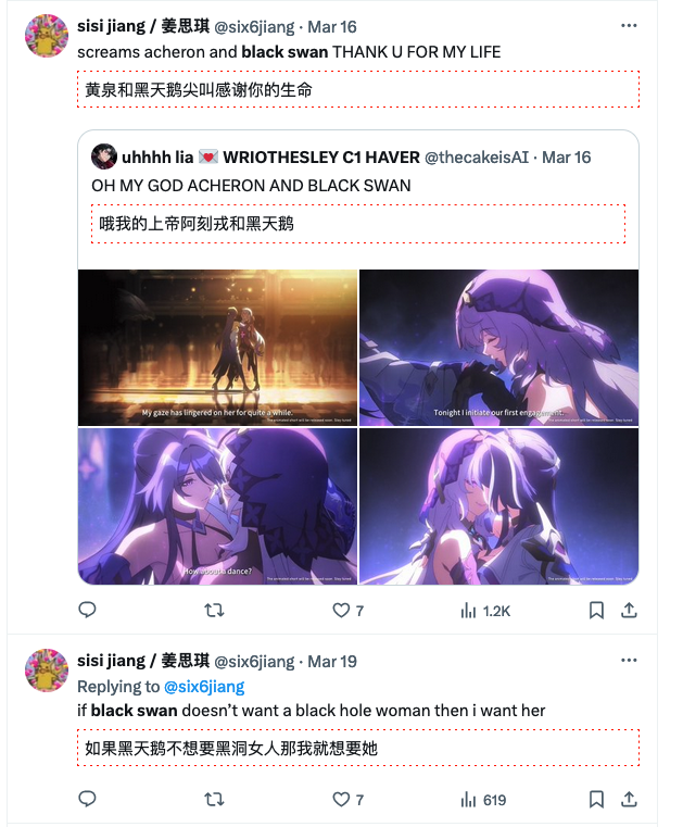 米哈游全球公关John Shen在sisi jiang入职米哈游后与其亲切互动。他曾在多个LGBT相关组织和知名同志社交软件Blued担任重要职位。