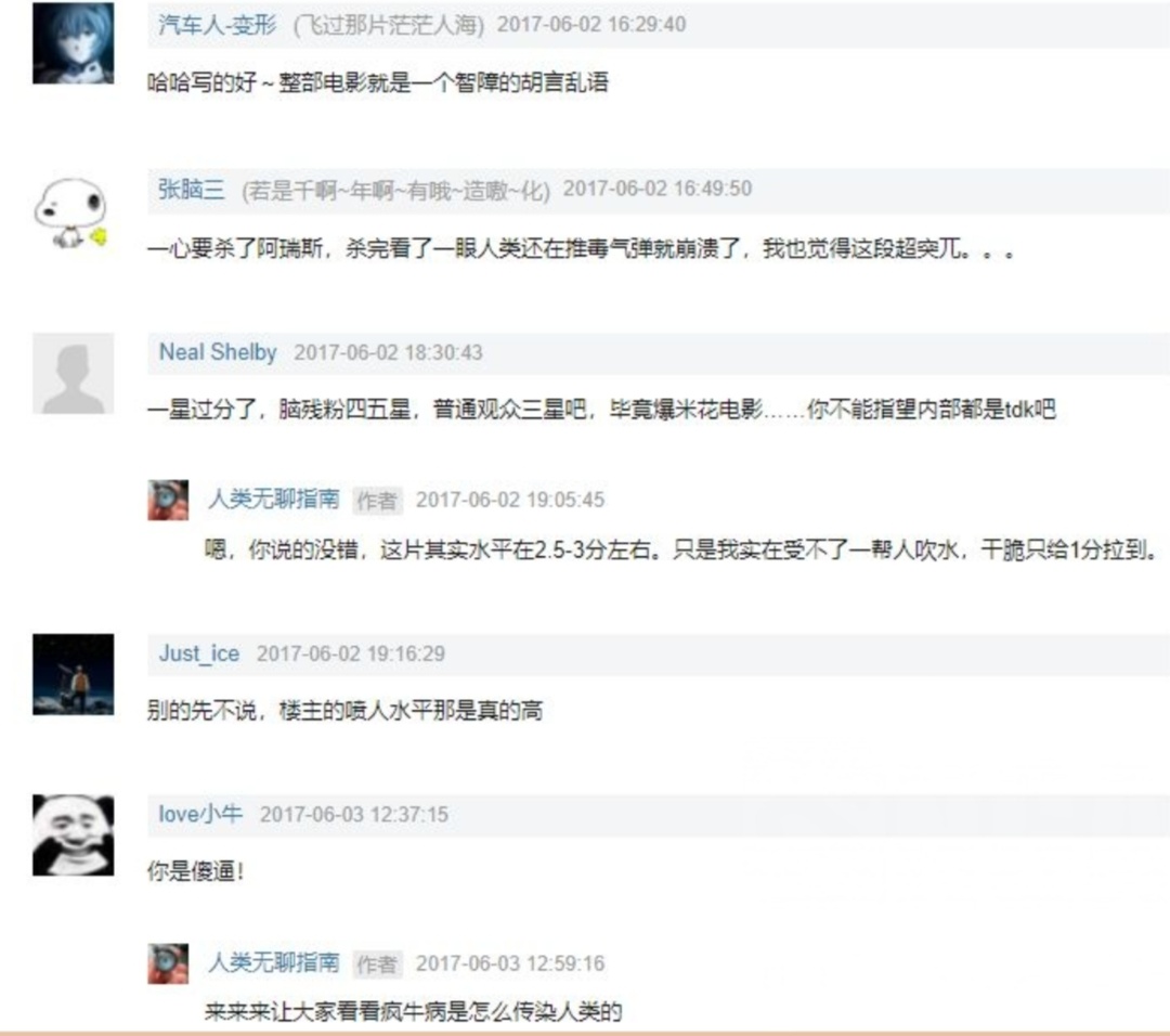• 亲自下场跟玩家对线(“笔在人家手里”,“文盲喷编剧,活现眼”,“没有你这种死吗货去裱,人家会改吗”)